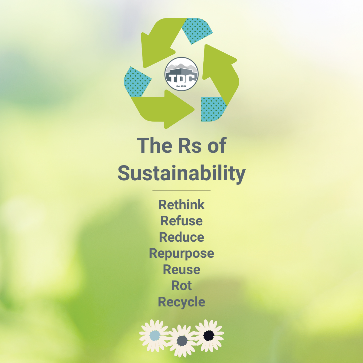 Every January, the staff at TDC come together to create a list of BHAGS. Big, hairy, audacious goals. This year our goals include building a new industrial building, continuing professional development, and implementing more sustainable practices by reducing our waste. There are many easy ways for us to reduce our waste. Here are some changes we made so far: